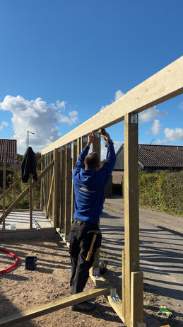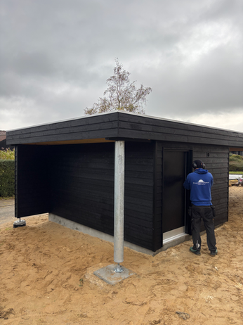 Når vi opfører carporte og skure, lægger vi vægt på en gennemført proces fra første opmåling til sidste finish.